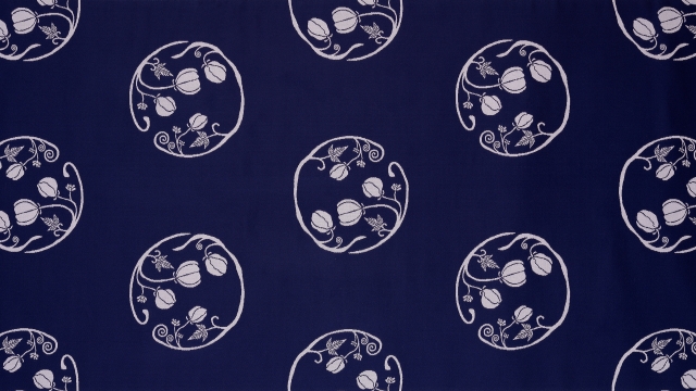 異業種間の交流を促し、伝統的な物作りを将来に向けて持続可能にするべく取り組んだプロジェクトの一環として製作致しました。文様の柄は蔓(風船蔓)です。蔓や蔦は上に蔓を伸ばすことから繁栄を意味するそうです。日本のみならず世界中で使われる吉祥柄を有職文様に仕上げました。